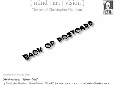Back of "Androgenous Worm God" postcard (it does not actually say "back of postcard" on it, silly!)